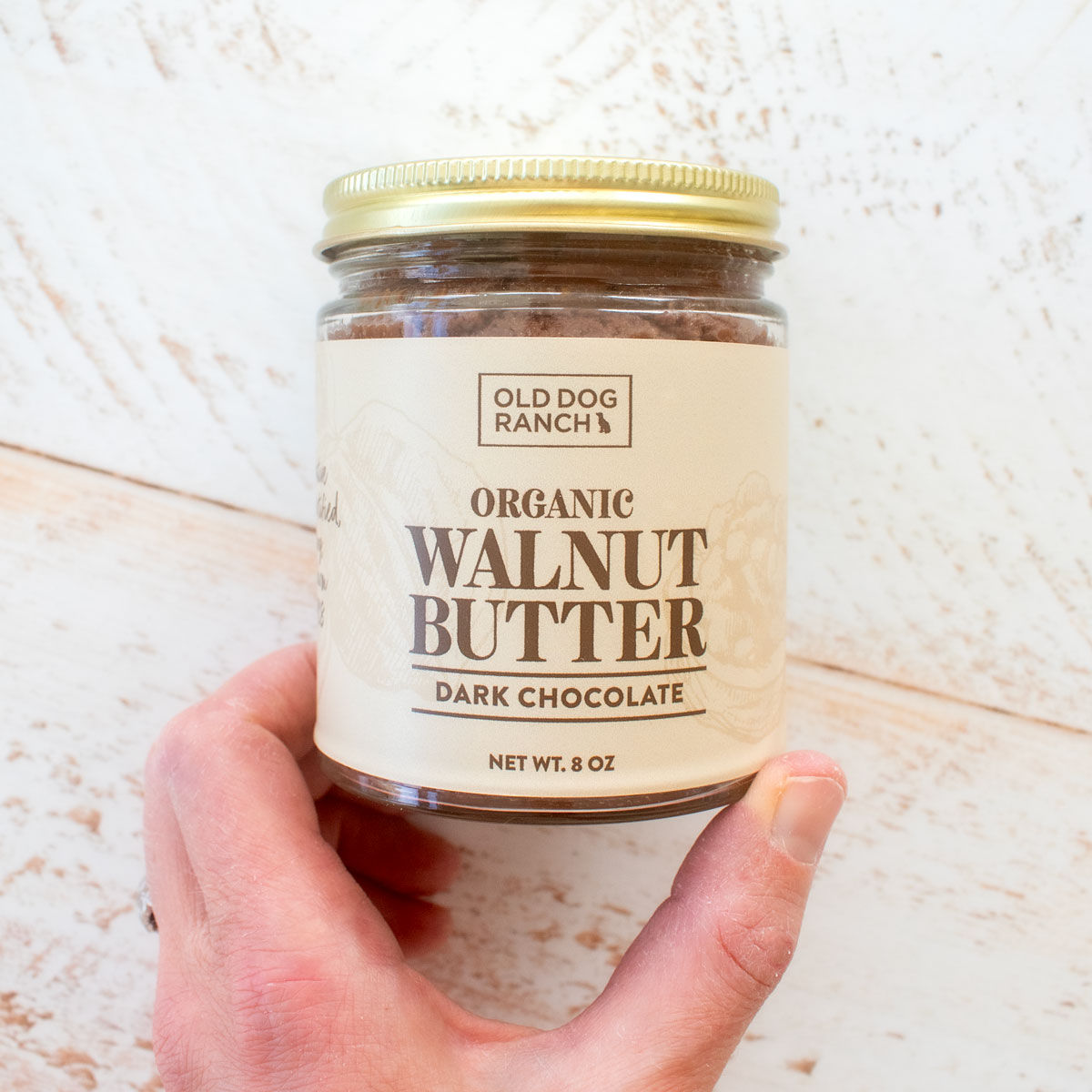 Old Dog Ranch’s Walnut Butter with Dark Chocolate doesn’t last long around here! I love it on toast with coffee in the morning, spread on sliced tart apples in the afternoon or a nighttime snack when I want something just a little sweet. Perfect on a rice cracker with bananas, yum!!